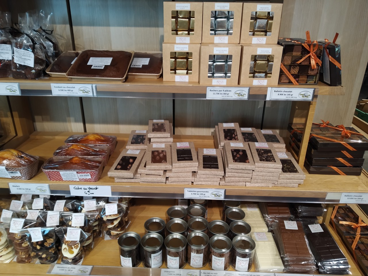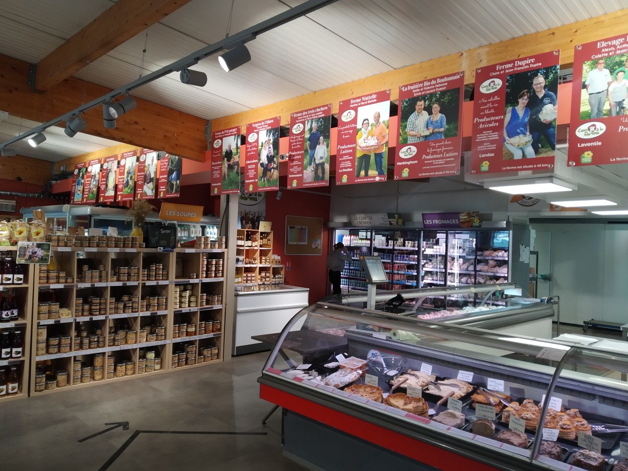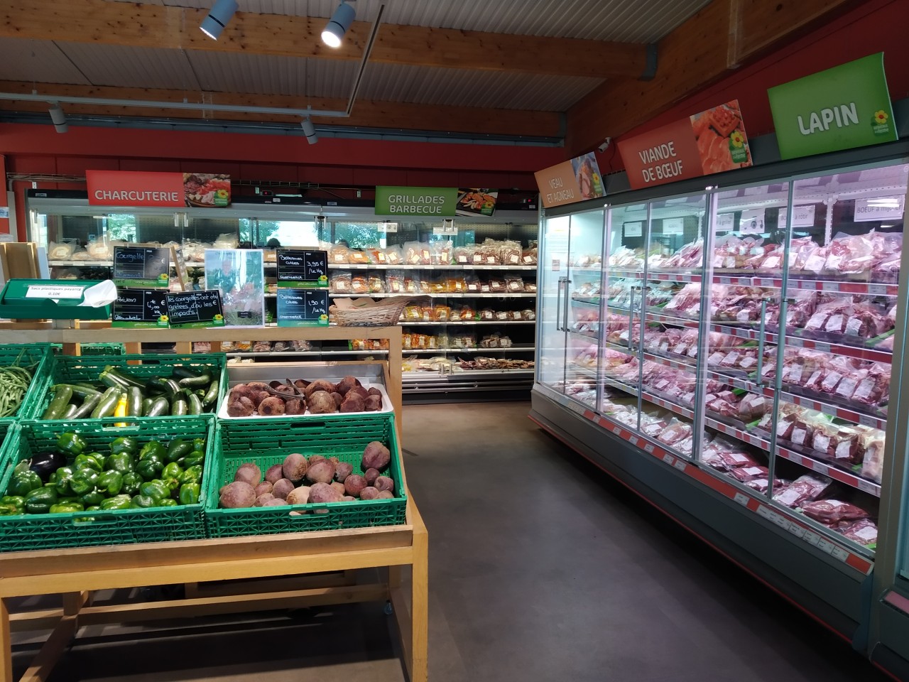 Gamme de produits : viande bovine, ovine, porcine, volailles, fruits et légumes de saison, fromages de vache, chèvre et brebris, produits laitiers, crèmerie, épicerie sèche (pâtes, farines…), épicerie sucrée (miel, gaufres, biscuiteries, chocolats…), plats préparés (carbonnade, bolognaise, crêpe farcie, quiche….), boissons alcoolisées ou non (bière, vin, jus…), pains et pâtisseries.