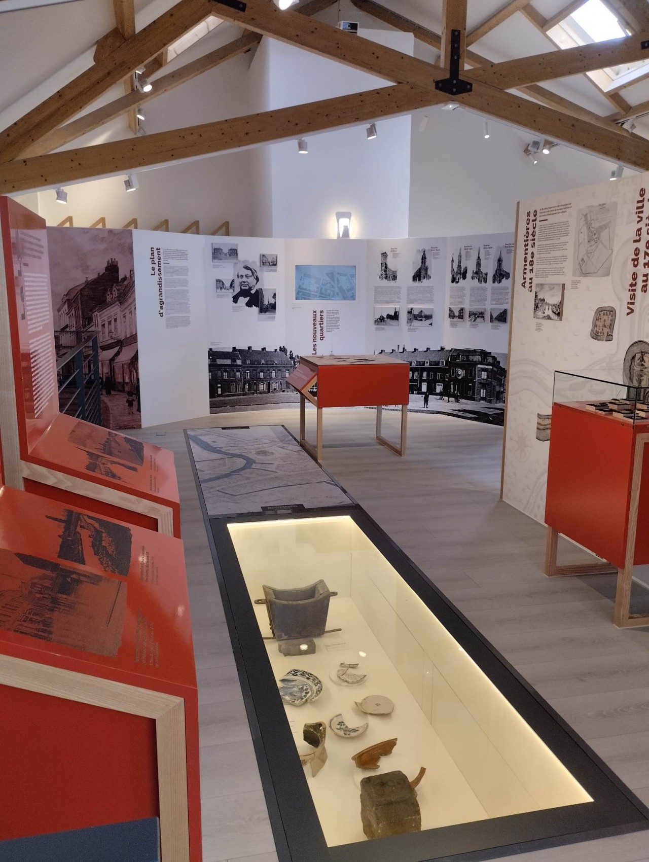 Panneaux, documents et objets d’archives, installations vidéo et audio, meubles ludiques… autant d’outils au service de cette exposition permanente issue d’un travail de recherches dans les riches archives de la ville et nourrie des nombreux travaux d’historiens locaux.