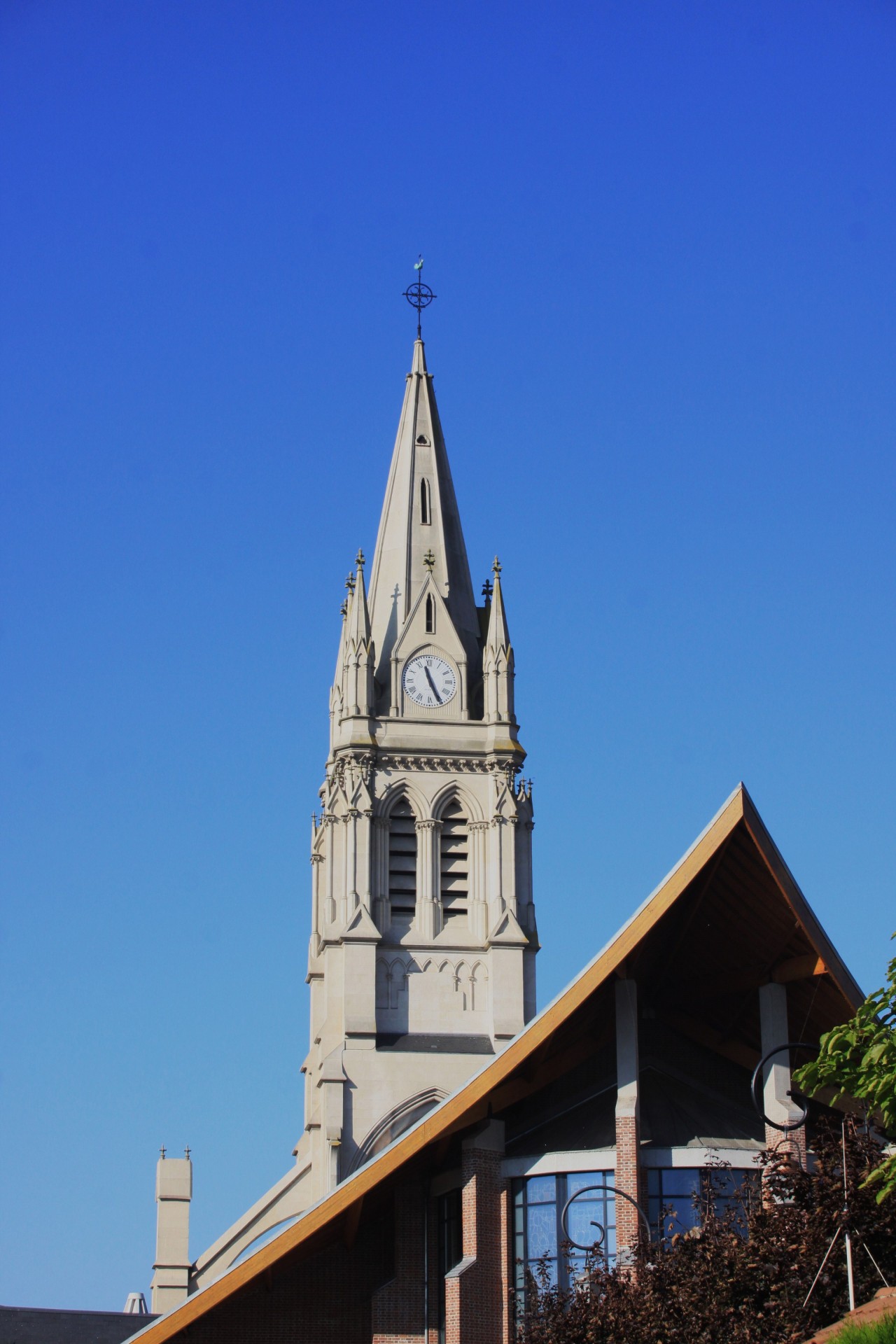 L'église précedente fut démoli en 2003, à l'exception du clocher et a été remplacé en 2005 par un lieu de culte d'architecture moderne mêlant le béton armé et le verre. La nouvelle église laisse plus de place à la lumière tout en disposant d'aménagements modernes.